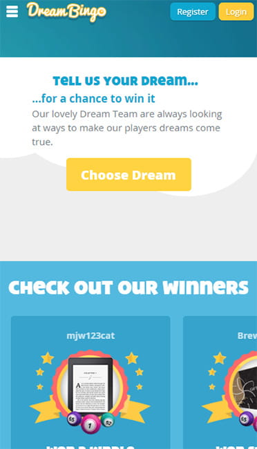 Dream Bingo is a brand brought to you by Betway Limited, which is licensed and regulated in Great Britain by the Gambling Commission. Betway offer numerous products such as bookmakers, casino and bingo, all of which can be accessed without download. In addition to being in our top selection of operators, Dream Bingo was shortlisted as a finalist in the 2014 WhichBingo Awards for Best Boutique Online Bingo Site.