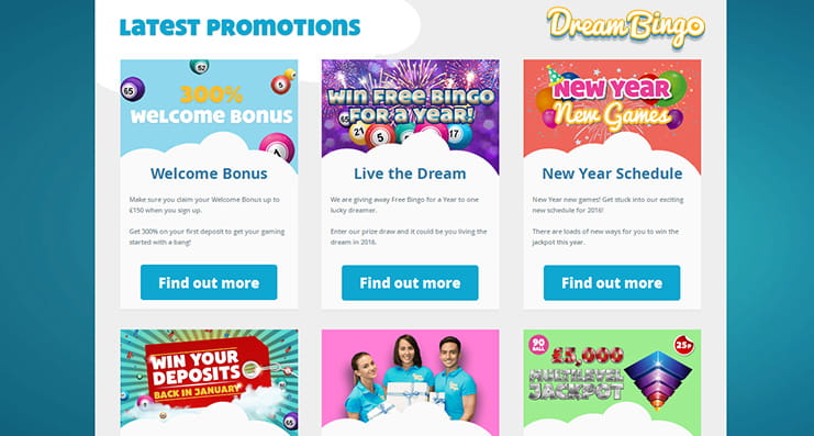 Dream Bingo is in the business of making bingo dreams come true and they strive to be your first port of call when it comes to playing online. Claim your huge Dream deposit welcome bonus when you join and play to win thousands of pounds in the progressive and community jackpot games – there’s £12,000 to be won in one room. You can also play bingo for free every day of the week.